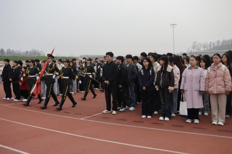 3月23日,太阳成集团tyc539在南湖校区操场举行“关注气候变化,守护蓝色星球”主题升旗仪式。辅导员熊新竹老师和2025级法学本1班、2班、3班全体学生参加此次升旗仪式。