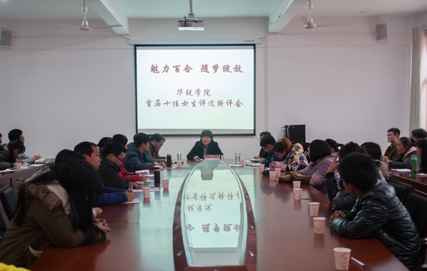 日前,我院“魅力百合 随梦绽放”首届“十佳女生”终评会议在行政楼206会议室召开。院党委书记张莉、团委副书记胡秀云、各系学工秘书、相关辅导员及60余名学生代表作为评委,参加了终评会议。