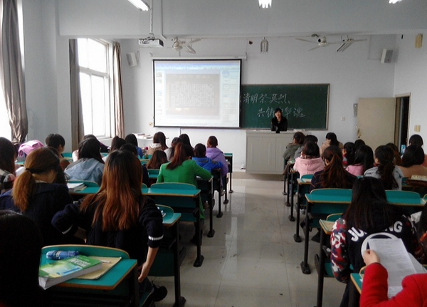 4月2日晚,院团委组织学生干部在数计楼207教室举行了“清明祭英烈•共铸中华魂”主题团队会活动。活动在青春激昂的《五月的花海》合唱声中拉开帷幕。学生干部代表李畅然带领同学们重温入团誓词,铿锵有力的声音喊出了广大学生干部对共产主义的坚定信仰。随后,全体学生干部认真观看了爱国主义电影《董存瑞》,大家对董存瑞舍身炸碉堡的镜头深受感动和鼓舞。学生代表社会科学系2014级樊梦茹在看完电影后感慨的说:“如果当年没有像董存瑞这样的革命先烈抛头颅、撒热血,就没有我们今天的幸福生活。因此,我们更应该铭记历史教训,努力学习,报效祖国”。