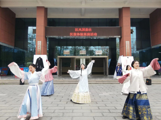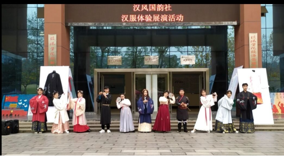 11月23日,汉风国韵社在社科楼前举办了汉服体验展演活动。社团指导老师王燕红、全体社员以及部分2019级部分学生参加了此次活动。
