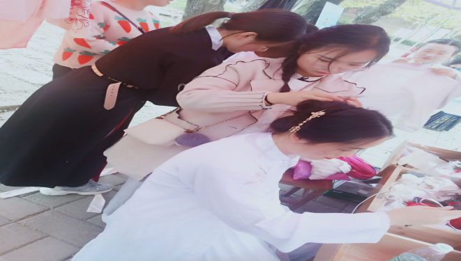 最后,举行了汉服体验活动,吸引了诸多同学试穿汉服,体验汉服之美,更有妆发服务,带给体验者更真切的梦回汉唐之感。