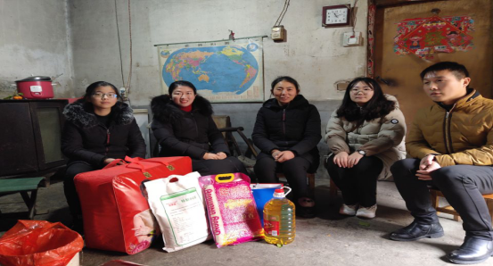1月8日上午,太阳成集团tyc539学工干事王晶和全体辅导员辅导员老师带着米、面、油、牛奶、棉被等慰问品,驱车几十公里前往罗山县贫困学生家中。该生家庭位于棚户区,居住条件有限,弟弟又患有重病,家庭经济困难。