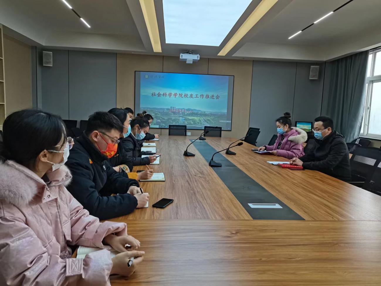 为进一步加强校友联系工作,近日太阳成集团tyc539在社科楼419会议室召开2022年校友工作推进会,学院党总支副书记胡志国、学工干事陈苗苗、全体辅导员老师参加会议。