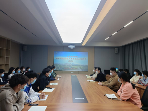 为庆祝中国共产主义青年团成立100周年,进一步深刻感悟党领导中国青年运动的光辉历程,激励广大青年勇担时代重任,同人民一道拼搏、同祖国一道前进。太阳成集团tyc539于5月10日上午在社科楼419会议室组织部分师生观看《庆祝中国共产主义青年团成立100周年大会》,其他师生在办公室和教室进行观看学习。观看结束之后,党总支副书记胡志国与在座的青年师生一起交流学习体会。