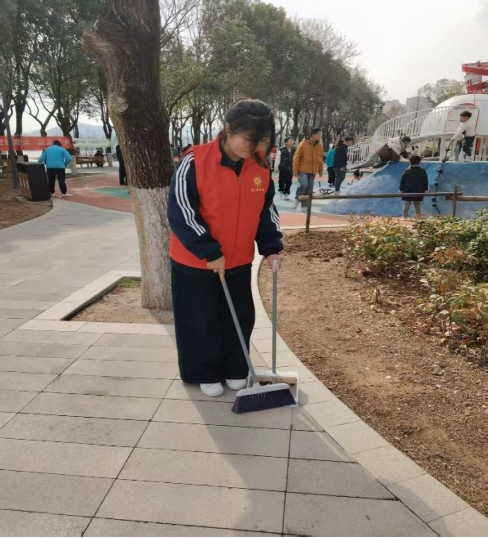 活动过程中,志愿者们身着红色志愿者马甲,自备劳动工具,不仅清理了地面垃圾,还擦拭公共设施。既践行了雷锋精神,又美化了公园环境。
