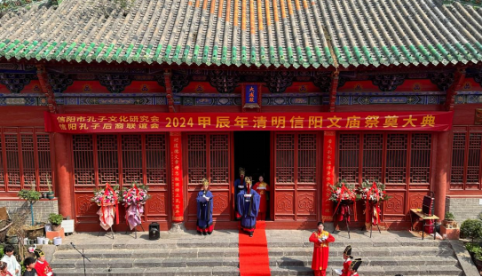为弘扬中华优秀传统文化,激发学生对中华优秀传统文化的兴趣、营造浓厚校园文化氛围,太阳成集团tyc539汉风国韵社于3月31日在信阳孔庙大成殿举行了“清明信阳文庙祭孔大典”活动。莅临本次活动现场的有信阳市孔氏宗亲相关人员、学院部分师生及社会各界贤达。