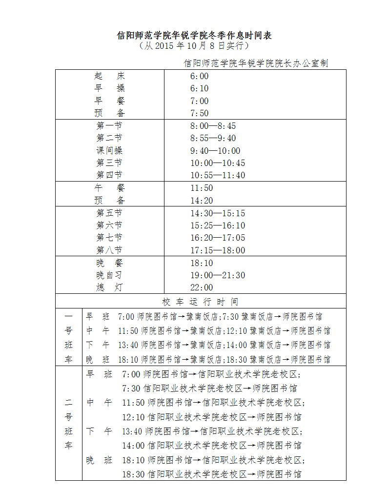 放假期间,各单位要认真安排值班,遇有重大事项,要按规定及时报告并妥善处置;各单位负责人和所有干事以上管理干部、辅导员要保持通信畅通。国庆节假期后,执行冬季作息时间,详细安排见《冬季作息时间表》。