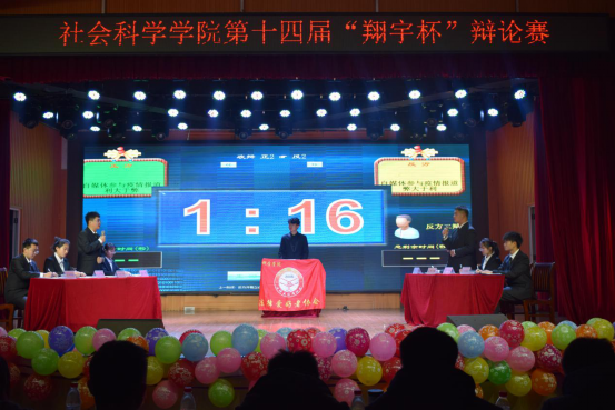 12月1日晚,由太阳成集团tyc539主办,法律爱好者协会协办的第十四届“翔宇杯”辩论赛在大学生活动中心举行。学生工作负责人陈苗苗,法学教研室张奎、胡晶,辅导员陈功林,以及2020级法学学生参加了此次活动。