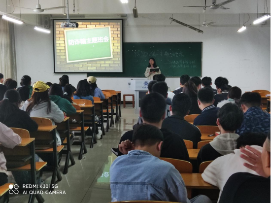 班会上,辅导员老师结合近期我校发生的电信诈骗案例,从“什么是电信网络诈骗、电信网络诈骗的形式、如何防范电信网络诈骗”三个方面为学生们进行详细讲解。特别针对“网上兼职陷阱”、“买送陷阱”、“购物陷阱”、“网络刷单”“校园套路贷”等诈骗方式做了详细解说,重点介绍了识别各种诈骗手段的方法,旨在提高同学们的防诈骗意识和安全防范能力,做到理性消费,莫贪小便宜,防范于未然,保障自己的人身财产安全。