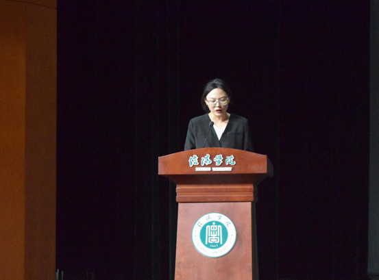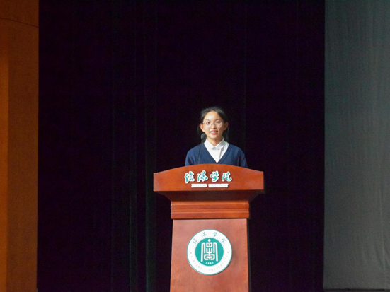 2022级法学本科1班郑心洁同学作为老生代表发言,对学弟学妹的到来表示热烈欢迎,并用三个“yue”已(阅已、超已、悦已)对学弟学妹提出祝愿。