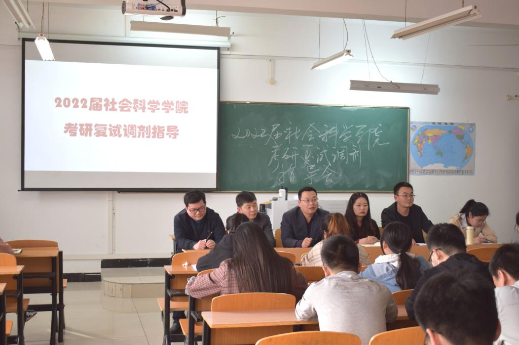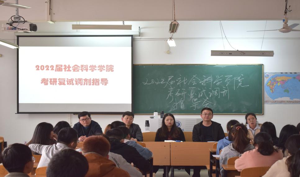 3月14日下午,为帮助今年考研复试的学生能够顺利通过,提高考研学生的应对能力。我院于社科楼512教室召开专题会议,对于考研复试调剂的同学进行指导。党总支副书记胡志国,学工干事陈苗苗,王燕红、梁耀中、张奎、徐战辉等专业课教师和毕业班辅导员,考研过线的同学参加此次会议。