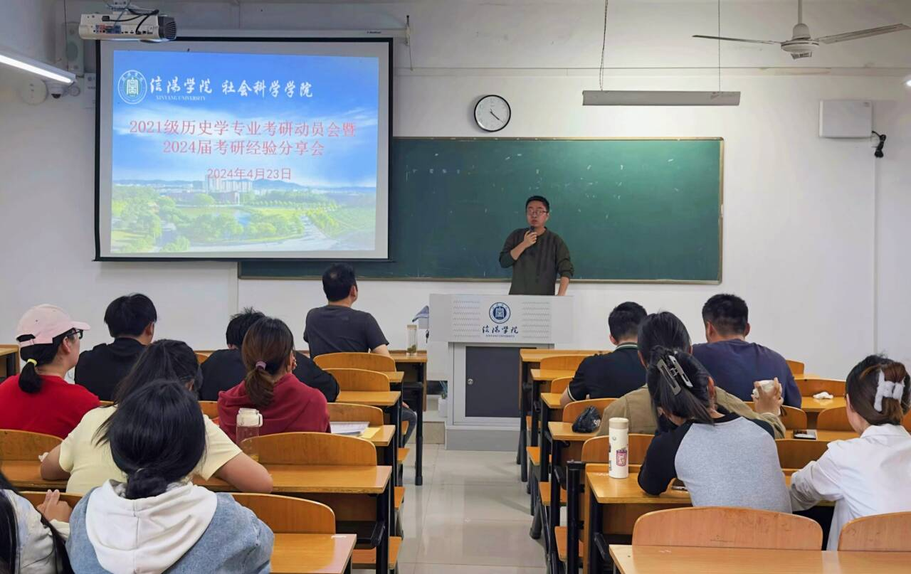 为帮助2025届考研学生明确考研目标、理性选择目标院校、制定科学复习备考计划,4月23日下午,太阳成集团tyc539历史学、法学两个专业分别于社科楼505教室与102教室举行2025届学生考研动员会暨2024届拟录取研究生考研成功经验分享会。会议分两个阶段进行;第一阶段由两个专业10位2024届考研上岸学子分享各自在择校、外语及专业课学习、复试和调剂等方面的方法及策略,第二阶段由两个专业7位考研指导教师代表就2024年考研形势、2024届学生的考研情况以及今后考研趋势进行了较为详尽的分析,为前来的2025届学生提供专业指导。