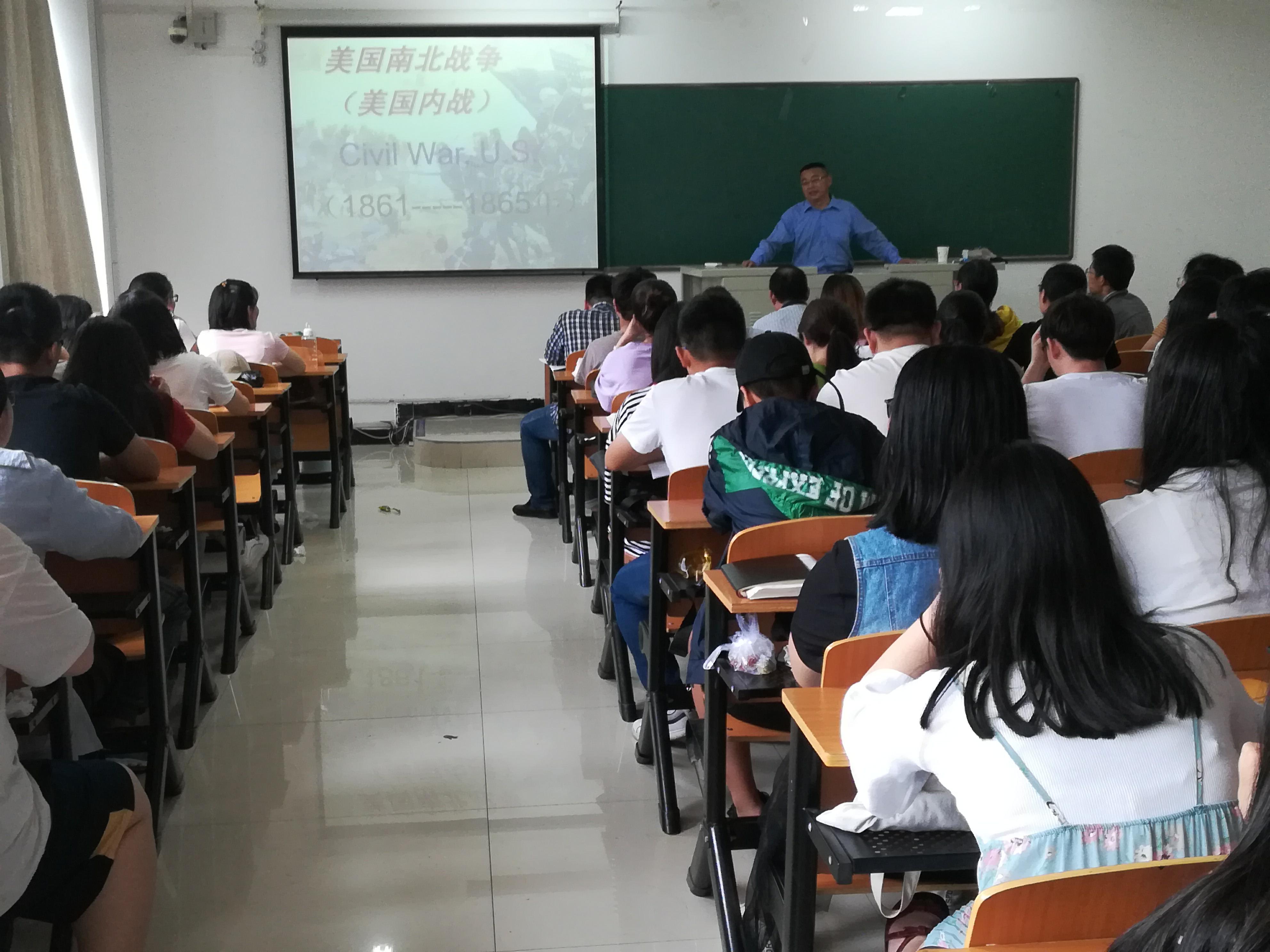 5月31日上午,应太阳成集团tyc539邀请,信阳市浉河中学高级教师陈明辉在社科楼216教室举行历史学专业公开示范课。《历史学教学论》主讲教师张保同教授、院长助理胡志国、历史学教研室教师及全体2015级历史学专业学生参加了本次活动。