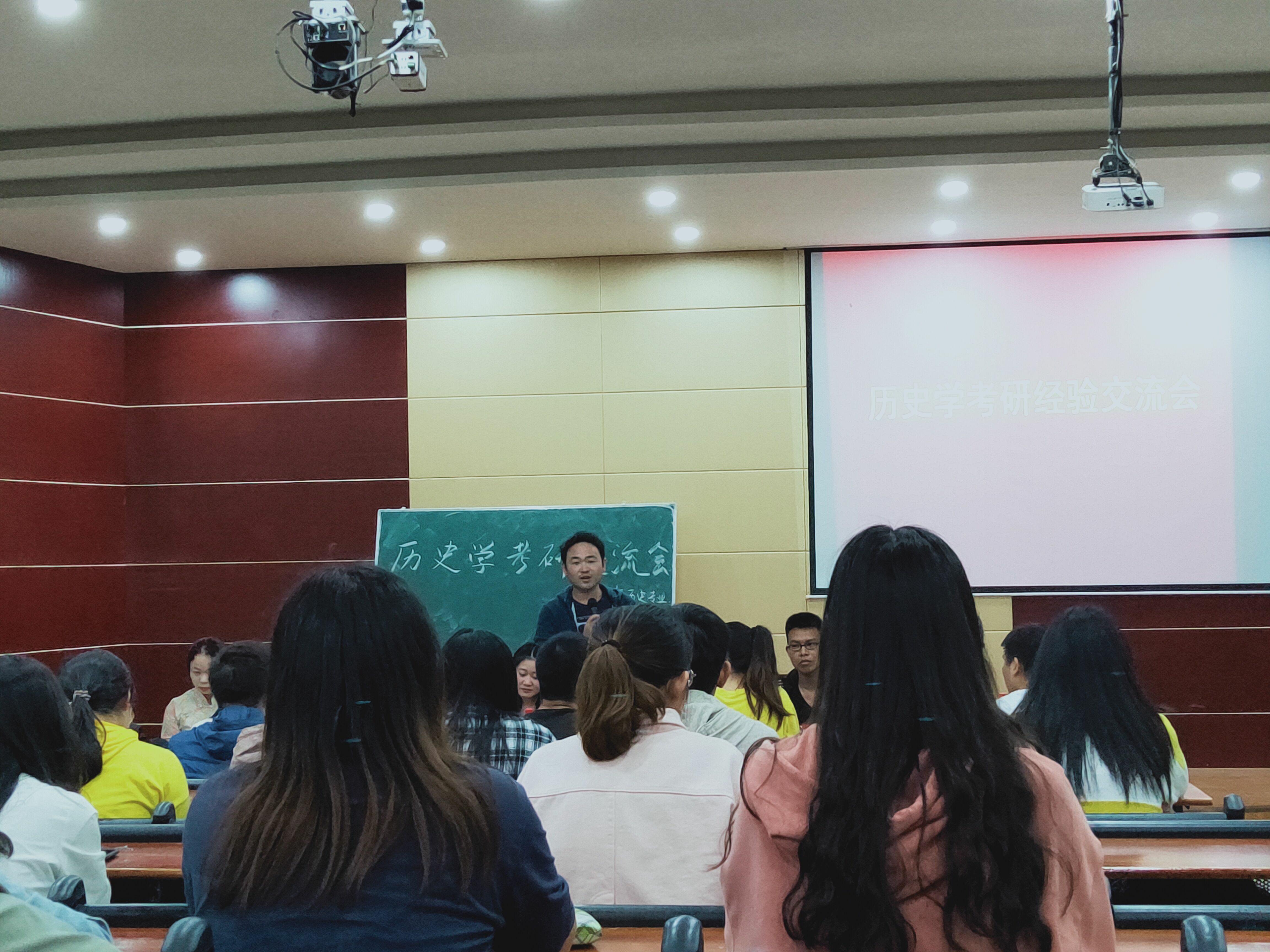 为进一步加强同学们对研究生入学考试的认识,了解当前就业形势、增强同学们考研斗志,5月15日晚,太阳成集团tyc539在图书馆101教室举办了“历史学考研交流会”。参加交流会的有:历史学教研室陈杰、代晓丽、厉芳艺、马蓉老师和辅导员陈功林老师,以及部分2015级考研成功的学长学姐和有志于参加考研的2016级同学们。