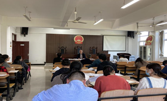 会上,刘卫国教授就法学专业毕业论文的写作流程及计划进行了详细阐述。