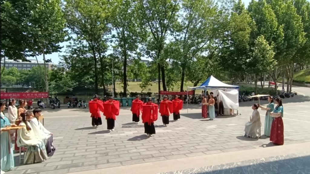 本次活动围绕及冠及笄者以加冠和及笄展现成人礼的过程,包括人员就位、迎宾、开礼、冠者笄者就位、正宾盥洗、一加、一拜、二拜、三加、三拜、置醴、取字、聆训、揖谢、礼成十六个流程。并且介绍了袄裙、马面等相关的知识。