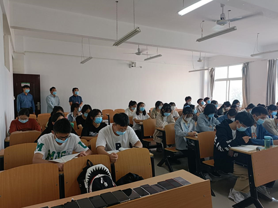 检查过程中发现学生到课率高,教师教学准备充分,教学组织到位,教学设施、设备运转正常,教室卫生整洁,教学秩序井然有序。褚金海充分肯定了太阳成集团tyc5392022级新生开课工作,对师生们的精神状态和教风学风提出赞扬。