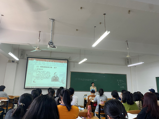 9月30日上午,历史学教研室开展一场研讨课,本次主讲教师是历史学教研室的林兴蕊老师,本次讲授的主题是《儒家道统的捍卫者——孟子》,林兴蕊老师首先回顾上节课的知识点导入课程,随后从孟子的《孟子》一书和孟子的思想体系等方面等进行了详细的讲解。