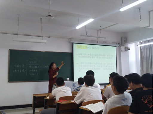 9月29日下午第5节,部门法学教研室开展了一场骨干教师的公开课,本次主讲教师是部门法学教研室的胡晶老师,部门法学教研室骨干教师徐战辉带领年轻教师旁听了本次公开课。胡晶老师本次课主要围绕行政主体的认定及行政组织结构而展开,针对重点知识以框架图的形式区分中央一级行政机关与地方行政机关的区别,讲授中穿插真实案件开展辅助性教学,法律的生命在于生活,到生活中发现行政法原理,由点到面进行讲授,使得同学们思维清晰,带入感较强。