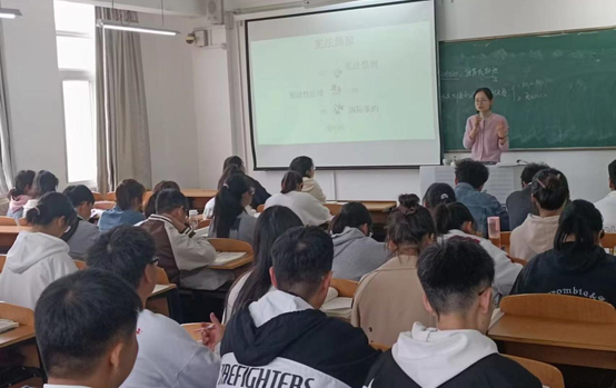 何玉香讲授的章节是《宪法学》课程中宪法结构。课堂上,何老师“据典析理”,根据《宪法典》“序言—正文—附则”的内容结构,系统性阐释了宪法的制定主体及其原理、宪法制定的基本原则、生效时间等内容,特别是从理论和实践两个维度深度剖析了我国宪法制定主体的正当性和逻辑自洽性。课后,与课教师对何老师的课堂准备的充分性、教学设计的规范性、结构安排的逻辑性的优点给予了肯定。同时,对课堂互动不够充分,板书设计层次不够清晰等有待改进之处给予了中肯建议。
