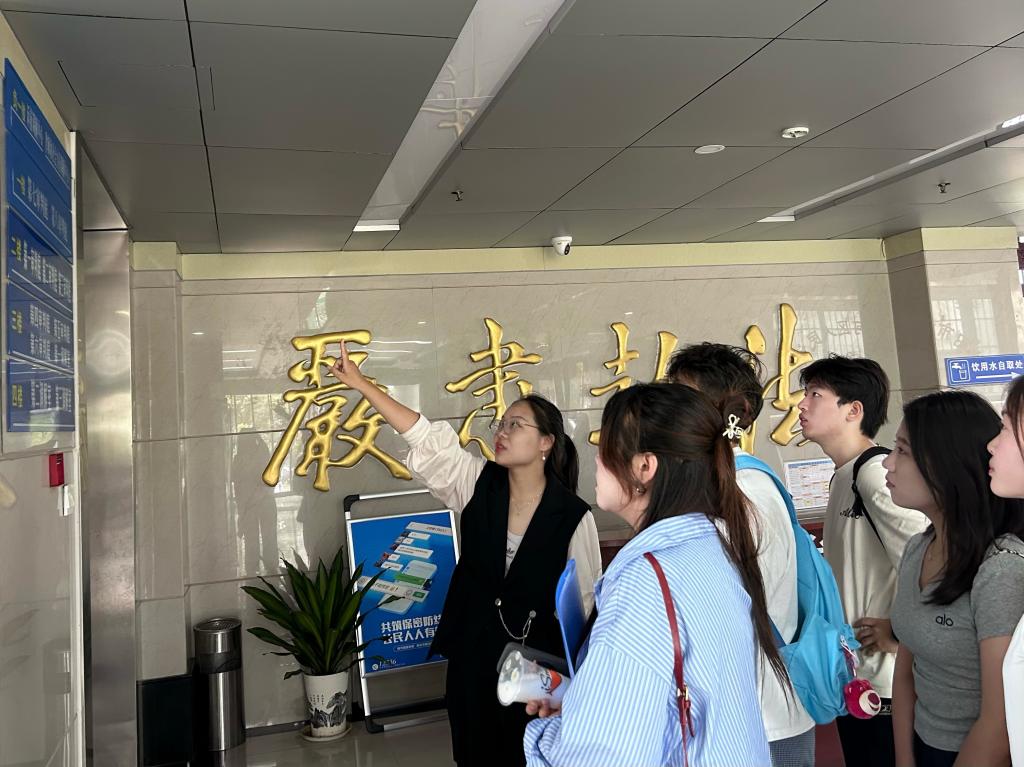 在刑事审判庭时法官的带领下,学生们参观了诉讼服务中心。胡晶老师现场教学,详细讲解了案件受理、综合服务、诉调对接、执行事务等区域的功能及业务范围,让学生们更加直观地感受到司法实务过程与学理知识的区别与联系。