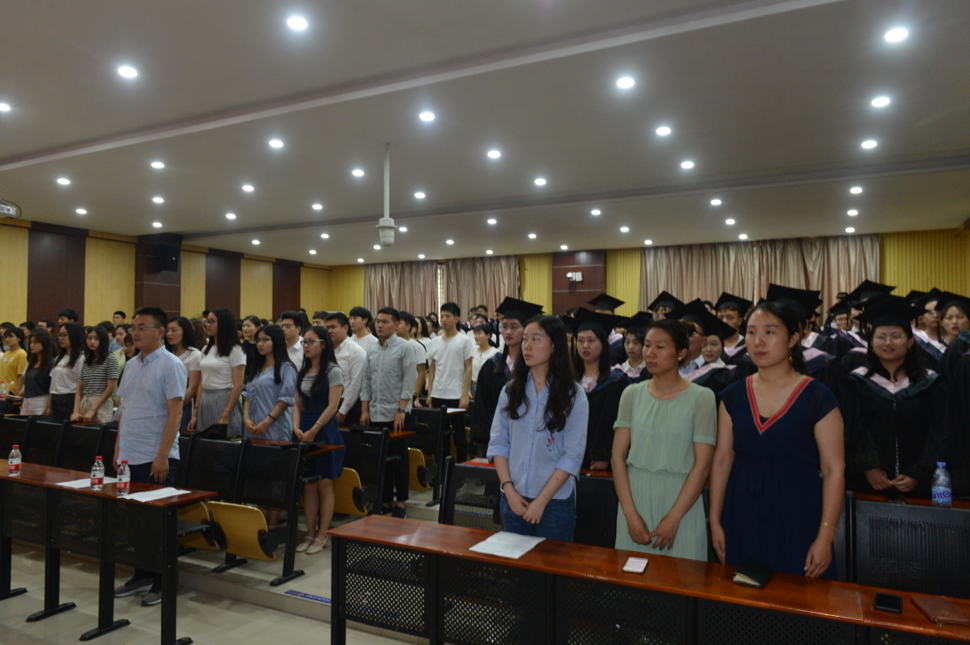 毕业典礼首先在雄壮的国歌声中拉开了序幕。接着,王娜老师宣读了《太阳成集团tyc5392019届毕业生获得学士学位学生名单》,王晶老师宣读了《太阳成集团tyc539关于表彰2019届优秀毕业生的决定》,程娇炎老师宣读了《太阳成集团tyc539关于表彰2019届毕业生学习标兵的决定》。各位领导和专家分别为获奖同学颁奖,为全体毕业生正冠拨苏、授予学位并合影留念。