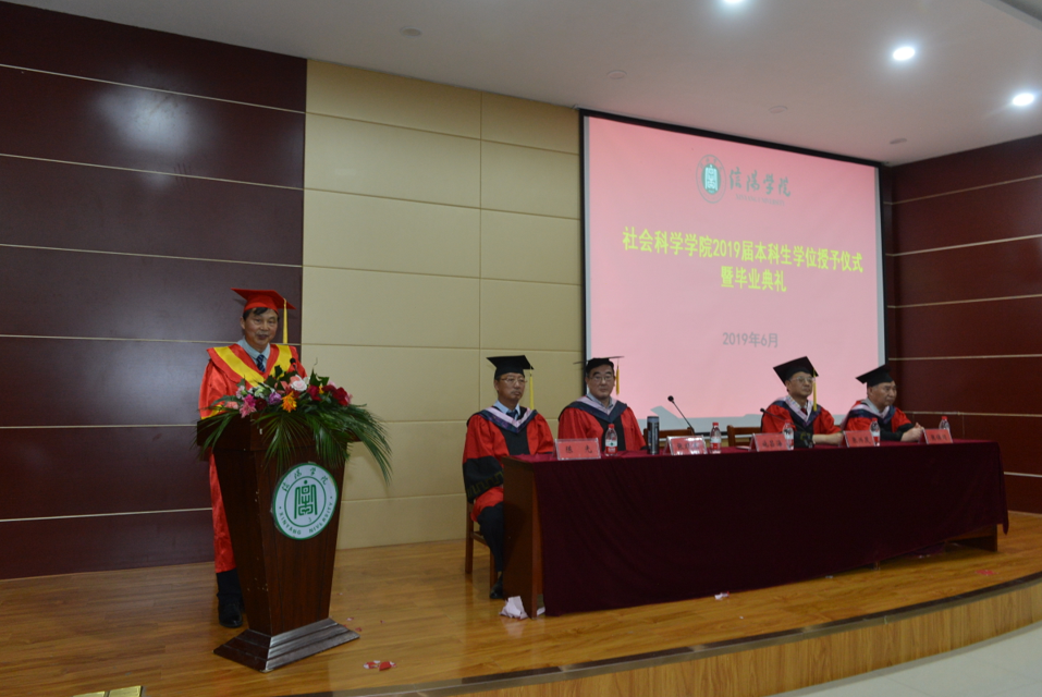 校党委专职书记施昌海教授作重要讲话:一是向全体同学表示祝贺。施书记指出,在座的各位同学在老师和学校的培养指导下,在自己的努力下,顺利地完成了四年的本科学业,获得了学位证及毕业证书,更为重要的是各位同学的专业能力和综合素养都得到了全面的提升。牛新原和吴晨昊同学参加太阳集团第十届“校园明星”汇报会,用自己的真实故事讲述了各自的成长经历和取得的收获,让出席活动的老师和同学们都深深感动。他们的成长过程和满满的收获也代表了我们太阳成集团tyc539甚至全校毕业生的成长与收获,充分体现了我们这一届学生良好的生活素质和成才成长的成果,非常令人欣喜。二是向大家表示祝愿。他祝愿同学们毕业以后,无论是走向工作岗位,还是继续深造,都要在新的旅程中再接再厉、继续前行,创造新的佳绩。成绩只代表过去,它的重要意义在于为自己的发展打下基础,但未来的发展如何,要靠我们付出新的努力。施书记最后衷心希望全体同学能够积极响应习近平总书记在纪念五四运动100周年大会讲话中对新时代中国青年提出的六点希望与要求,希望大家擦亮青春底色,不忘初心,砥砺前行。