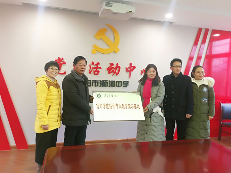 12月10日上午,太阳成集团tyc539院长陈录生、党总支书记李赟、学工秘书刘颖方、实践教学指导老师胡晶一行前往信阳市浉河中学与浉河中学王琴校长签署了联合建设法学实践基地协议书,随后举行了挂牌仪式。王校长对陈院长一行表示热烈欢迎,座谈中王琴校长首先对我校以往开展的法治讲座表示肯定和赞扬,并且表达了对太阳集团的法学专业师生以后能经常为浉河中学师生送上更多、更丰富的法治教育大餐的诚挚希望。随着法治教育已纳入国民教育体系,浉河中学每周四开展社团法治课,王校长也希望我校法学专业师生能为其此项工作的开展提供支持。陈院长对浉河中学为我校法学专业学生实践实习提供的平台表示感谢,并表示法学师生综合素质过硬,肯定能为浉河中学的法治教育填光添彩,双方领导商议随后将继续深入合作,并保持密切沟通。
