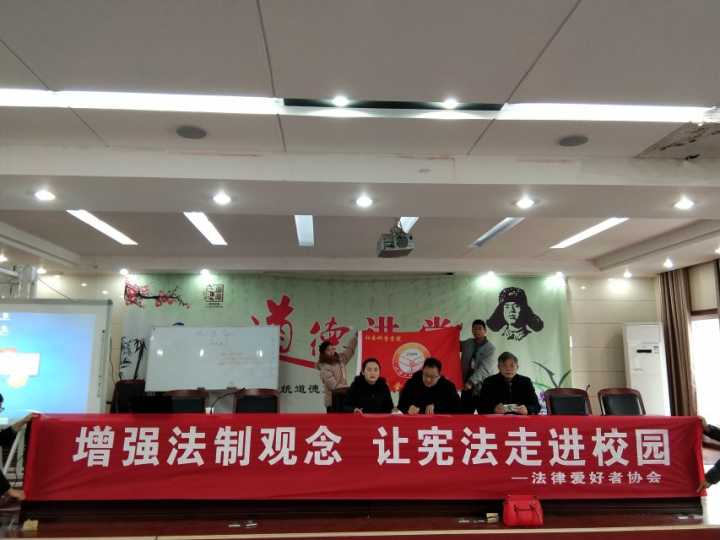 12月4日上午,我校法学专业教师蔡坤朋带领学生走进信阳市浉河区中学展“送宪法进校园——宪法宣讲教育”活动,为师生们送去了一场寓教于乐的法治讲座。蔡坤朋老师用通俗易懂的语言,深刻的案例向师生们详细的讲述了学习了解宪法知识的重要性。并带领大家进行宪法晨读。此次活动受到了浉河区中学校领导的重视和欢迎,他们表示太阳集团送法进校园活动可以有力提高师生们的法律意识,让广大师生都树立起遵纪守法意识,并签署了双方合作协议书。
