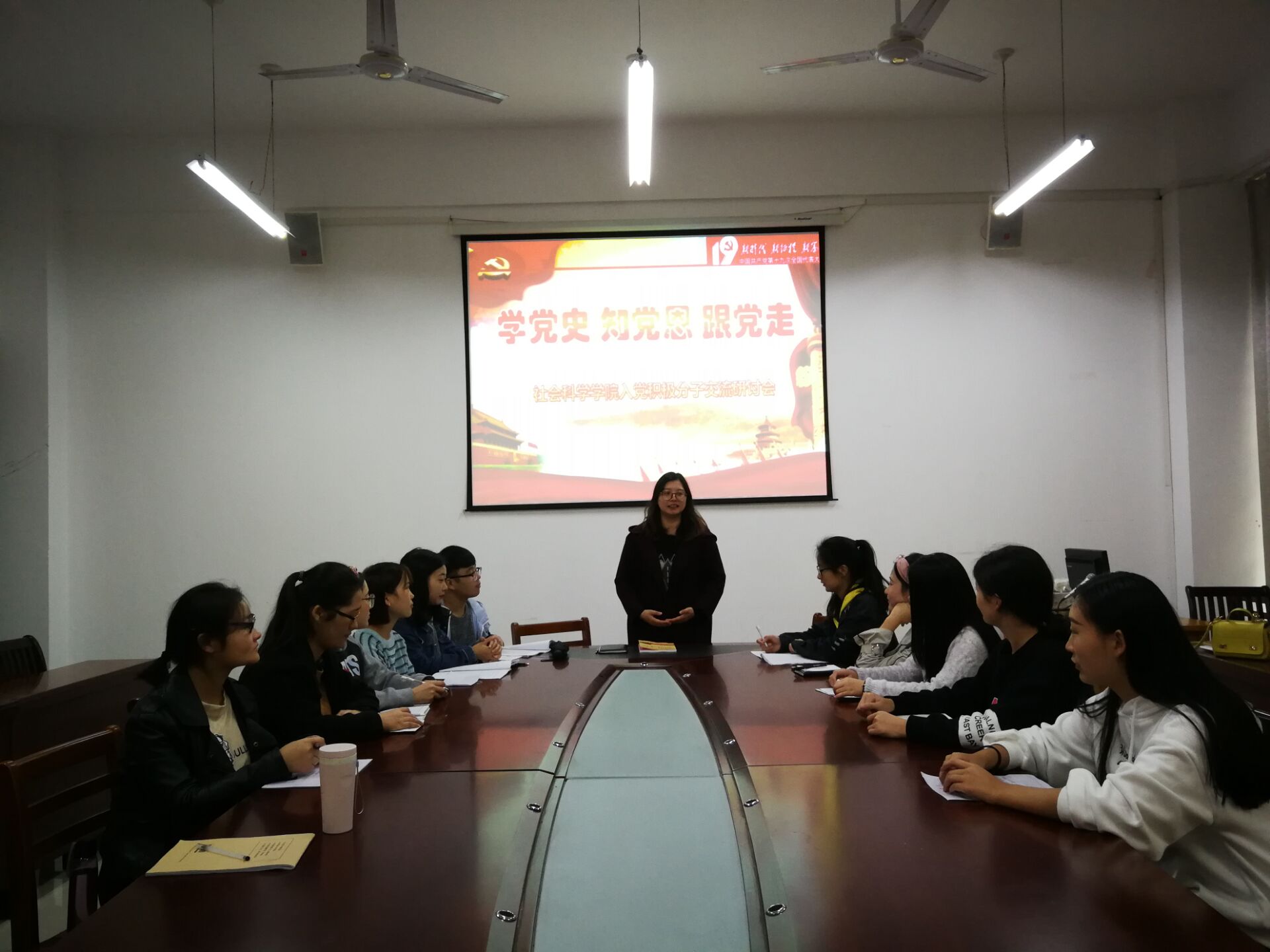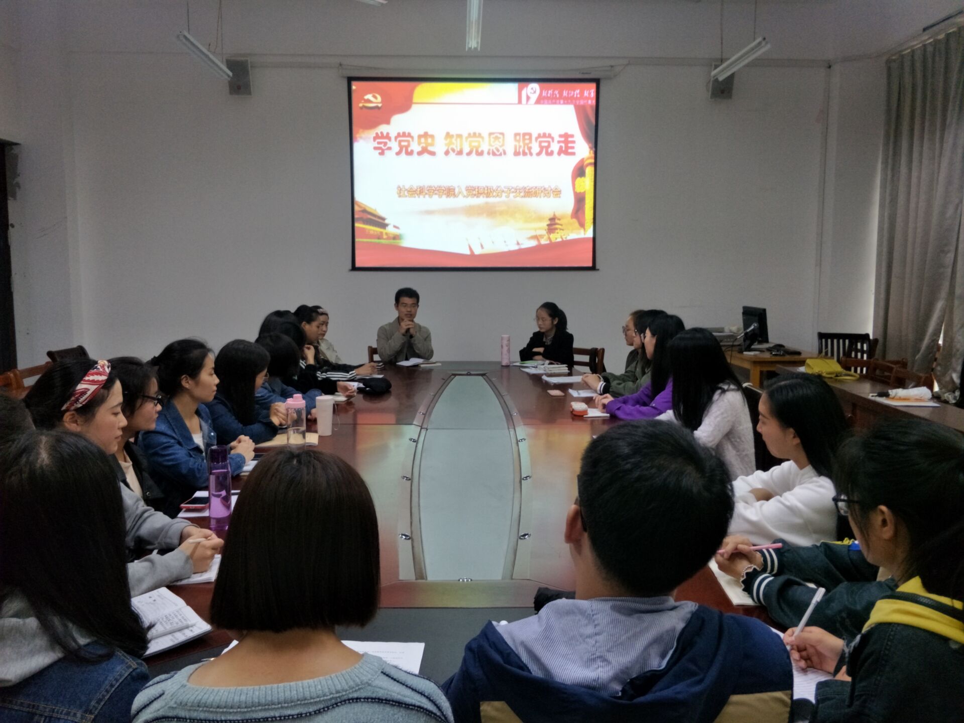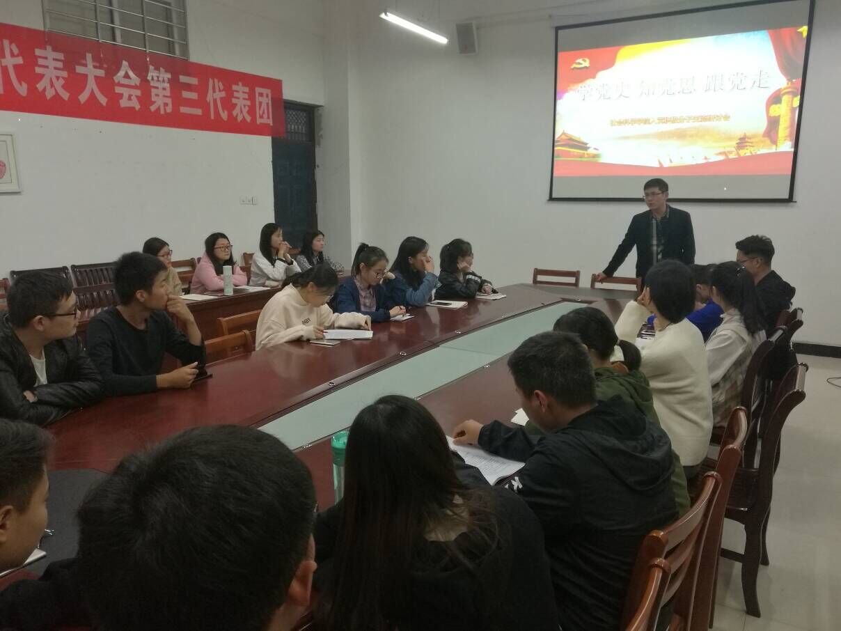 在交流研讨过程中,学员从不同角度阐述党的发展历程,在深入学习党史的基础上明确入党动机,并且把杨善洲、艾跃进、郑德荣等优秀党员视为自己的学习榜样,学习他们团结友爱、艰苦奋斗,清正廉洁的优秀品质,树立正确的世界观、人生观、价值观,提高自身党性修养。在会议行将结束之余,各党支部老师引导学员树立正确思想观念,建立自我信心,鼓励学员不仅要在组织上入党,更要在思想和行动上入党。大会在热烈的掌声中结束。