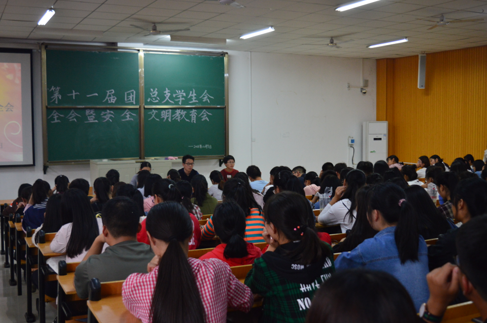 10月9日,太阳成集团tyc539第十一届团总支学生会全会暨安全文明教育会在社科楼219隆重召开。会议在热烈的掌声中拉开了序幕。参加会议的有党总支书记李赟、学工秘书刘颖方、团总支书记徐晓琰、18级全体辅导员老师、主席团成员、17级18级班委和十一届学生会干事。