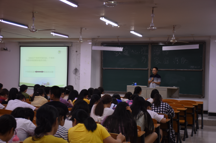 杨老师围绕家庭心理治疗的理论知识和实际操作等方面进行了讲演。主讲人杨老师结合自身的经验,给学生讲解及分析了许多家庭心理治疗的实际操作案例,并同时向心理学专业的同学们提出了几点期望:第一,期望同学们扩大知识面,提升专业技能;第二,期望同学们注意把自己所学专业和社会需要结合起来,注重实际技能的培养。此次讲座内容丰富多彩,语言生动幽默具有哲理,同学们均收获颇多,整个讲座在同学们的热烈的掌声中结束。
