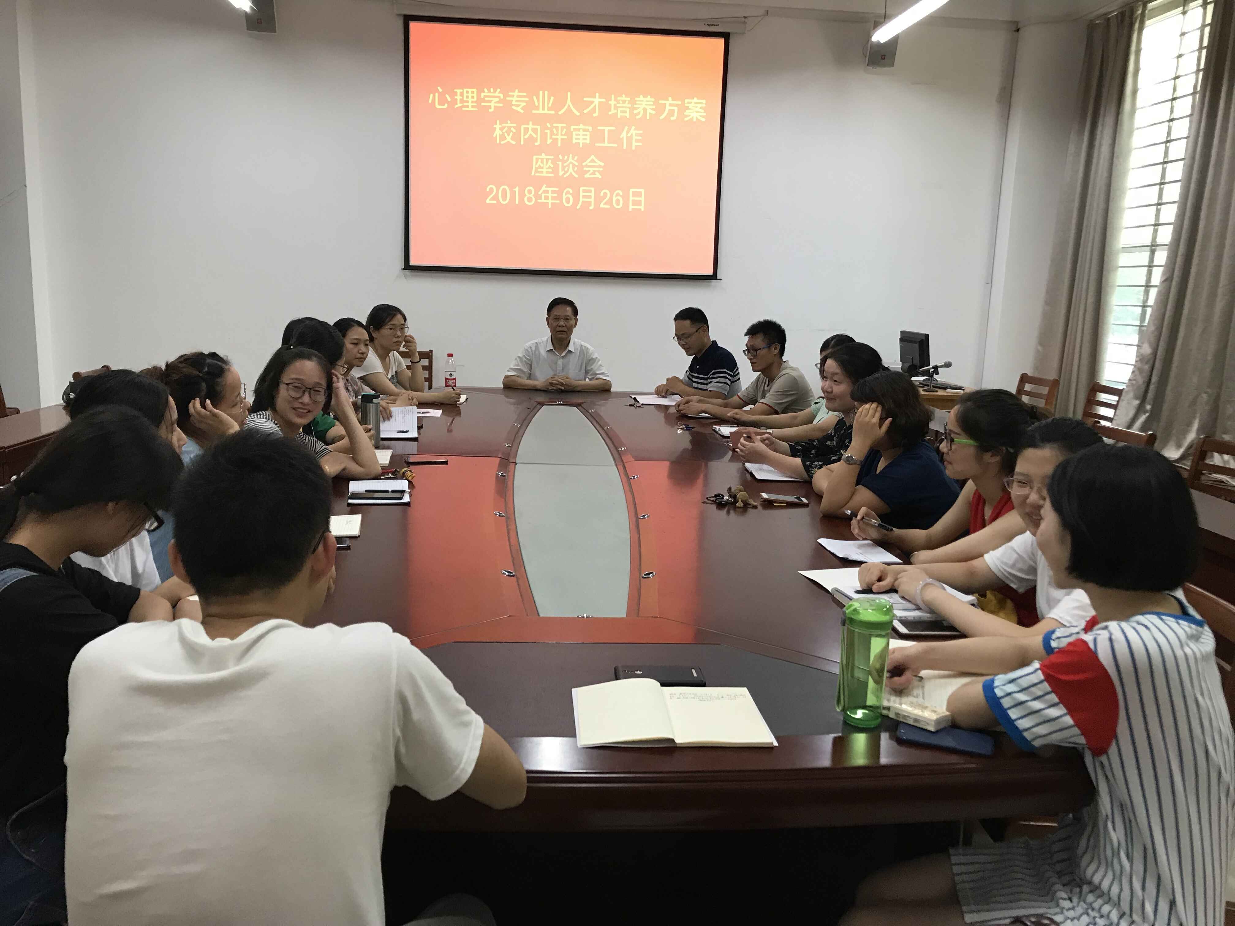 6月26日,太阳成集团tyc539在社科楼会议室及教室分别举行各专业人才培养方案校内评审工作会。太阳成集团tyc539院长陈录生教授,特聘教授韩文根、张晓东、张保同,陈杰博士分别参加心理学、教育学、小学教育、学前教育、法学、历史学本科专业人才培养方案评审,各教研室主任及相关教师,各专业学生代表参加了此次座谈会。