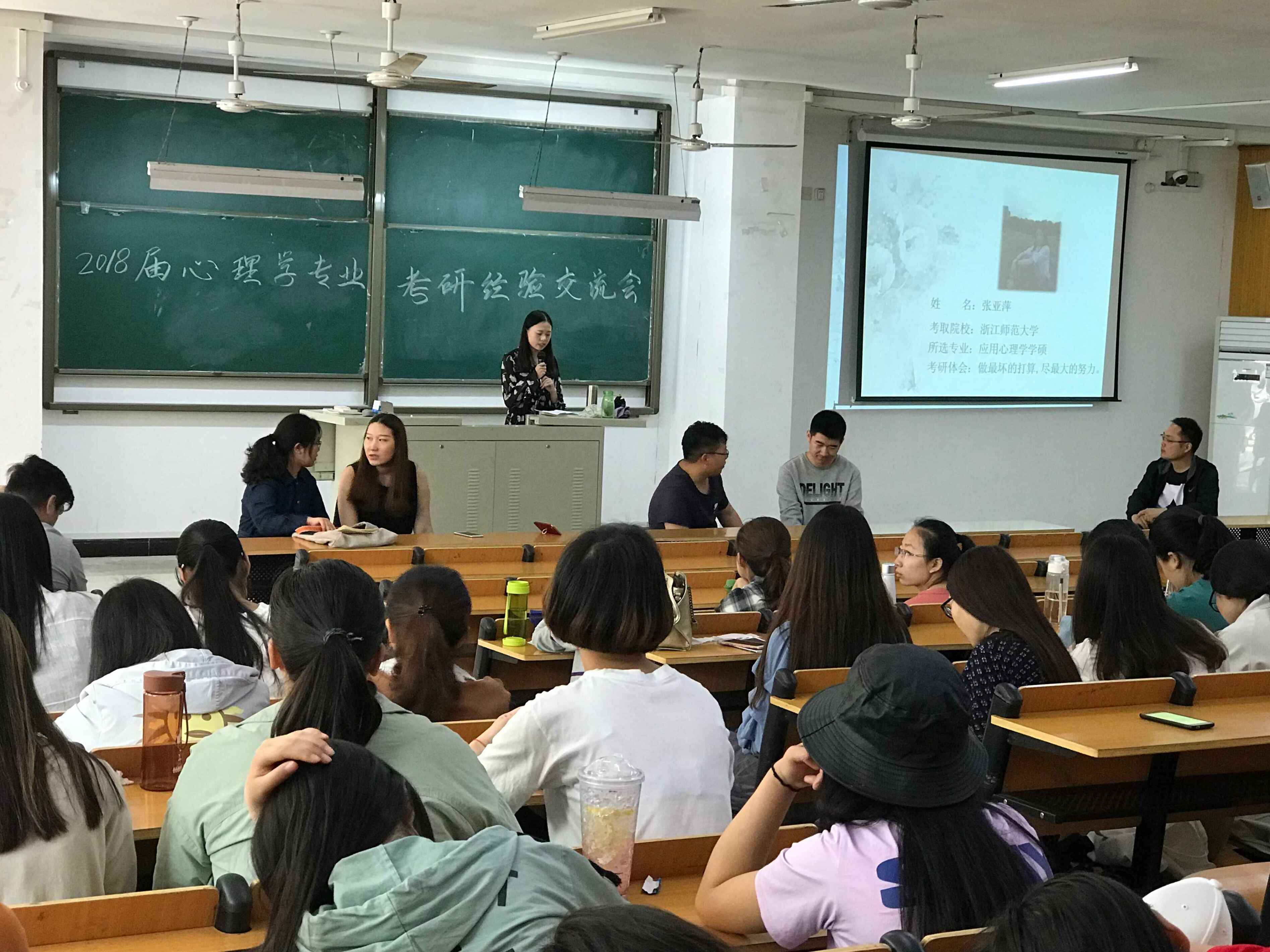 5月8日,太阳成集团tyc539心理学教研室在人文楼108举办了“2018届心理学专业考研学生经验交流会”。心理学教研室主任杨立昊、相关专业教师、考研学生代表和2015级心理学专业学生参加了此次活动。