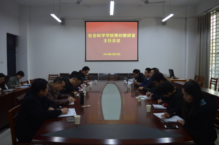 3月20日下午,太阳成集团tyc539在社科楼107会议室召开期初教研室主任会议。该院院长陈录生教授、党总支书记李赟、院长助理胡志国、学工秘书刘颖方、教学干事李春云、行政干事程娇炎及全体教研室主任、毕业班辅导员参加了此次会议。