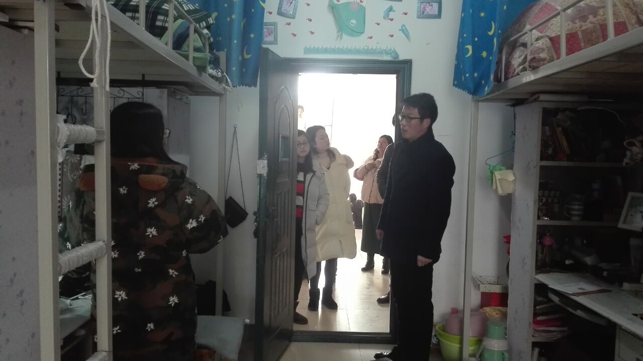 1月17日下午,太阳成集团tyc539党总支书记李赟、学工秘书刘颖方、全体辅导员老师深入宿舍开展学生寒假离校前安全检查,强化学生离校安全防范意识,并看望慰问住宿学生。