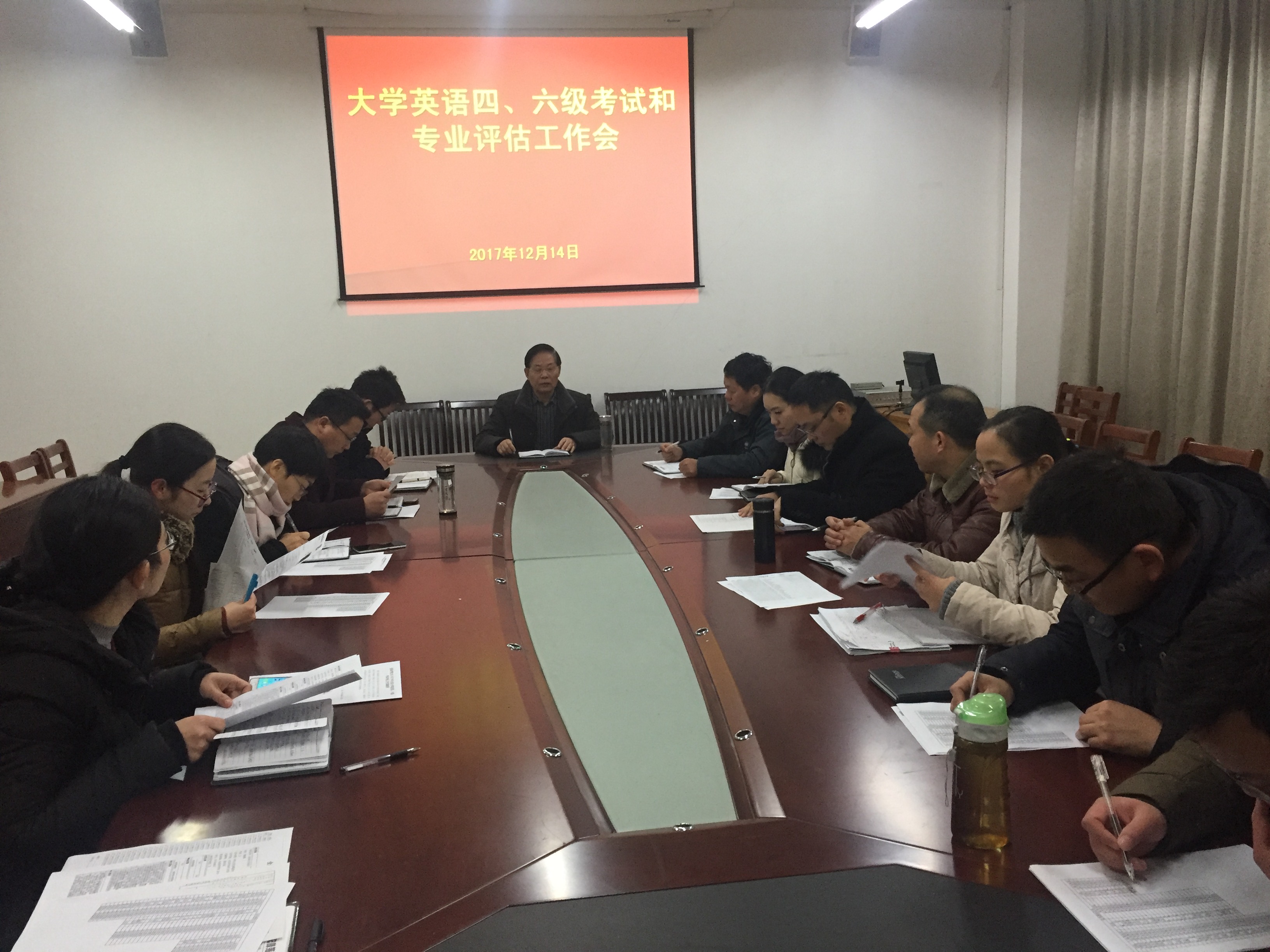 12月14日下午,太阳成集团tyc539在社科楼107会议室召开大学生英语四、六级考试和专业评估工作会,该院院长陈录生教授、党总支书记李赟、院长助理胡志国、学工秘书刘颖方、教学干事李春云、行政干事程娇炎,各教研室主任及教师代表参加了本次会议。