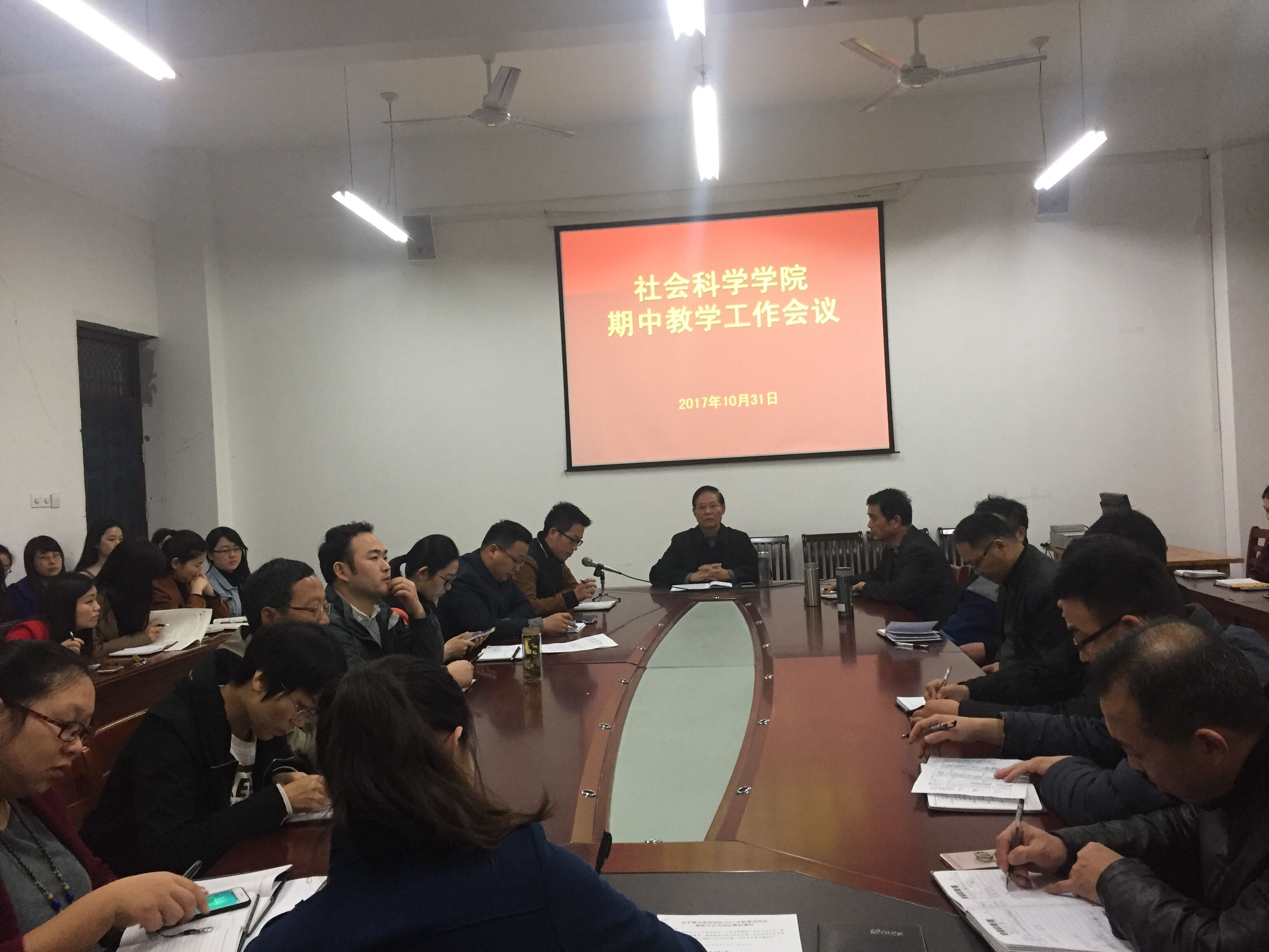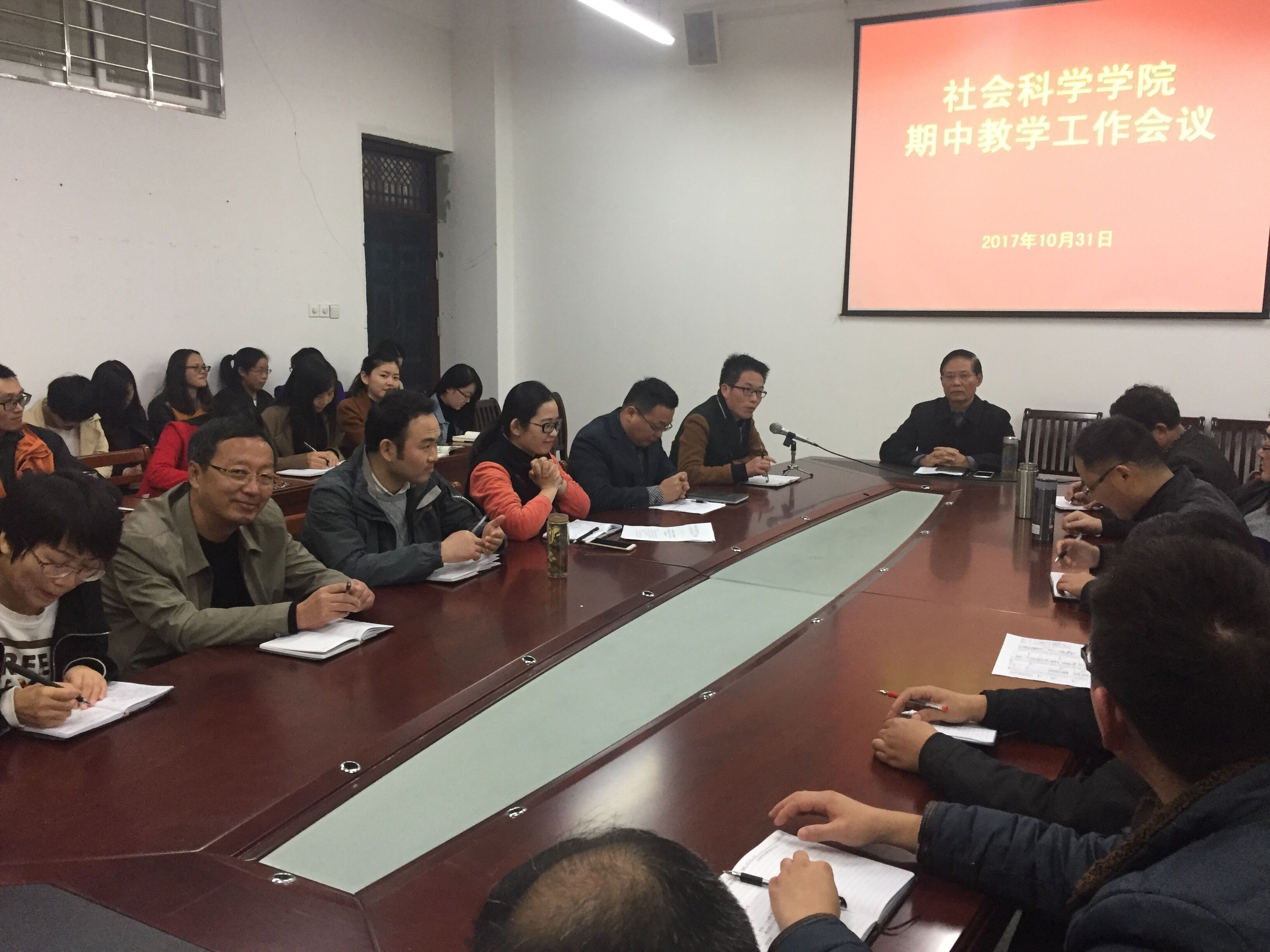 10月31日下午,太阳成集团tyc539在社科楼107会议室召开了期中教学工作会议,该院院长陈录生教授、党总支书记李赟、院长助理胡志国、各秘书干事、特聘教授、博士及全体教师参加了会议。会议由李赟主持。