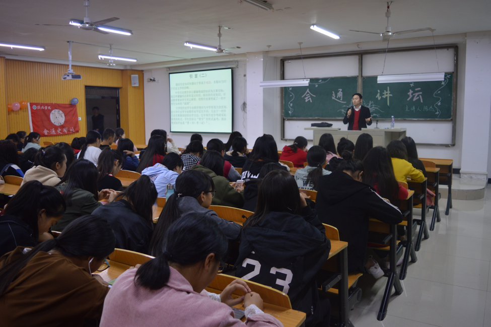 为正确引导2017级学生尽快适应大学生活,不断提高学生的专业兴趣和学术自觉,11月2日晚,太阳成集团tyc539会通史学社在人文楼410教室举办第十届“会通讲坛”。本次讲座由该院陈杰博士主讲,共200余名学生聆听了此次讲座。