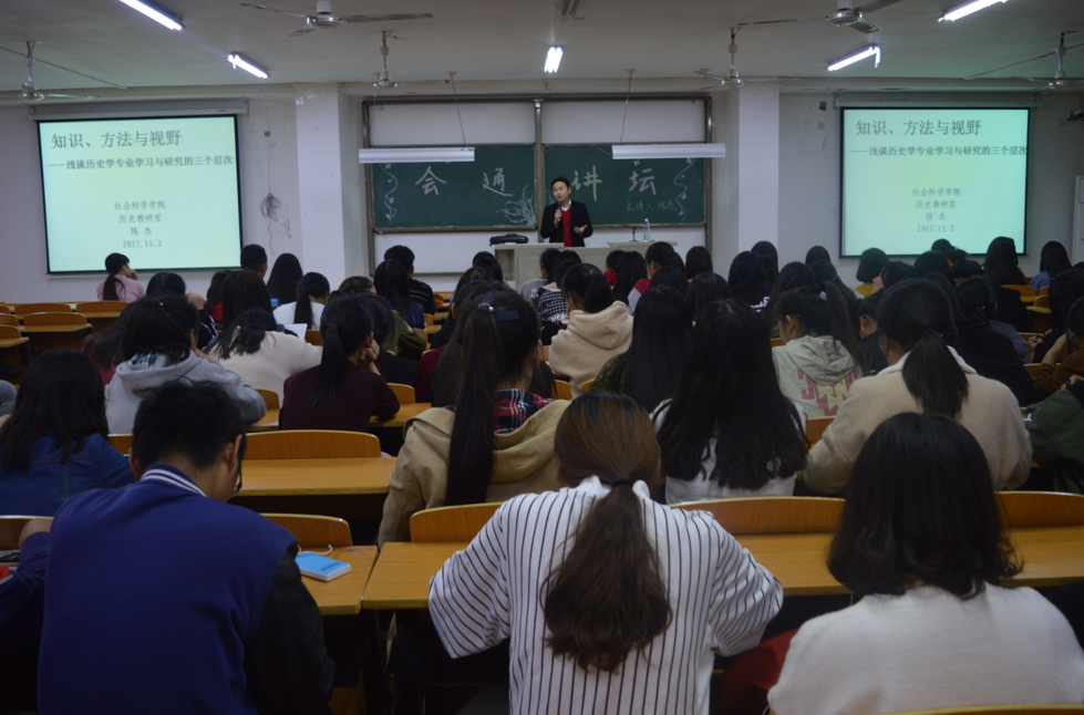 本次讲座陈老师从历史学的重要性这个角度出发,将学生引入了他的主题——浅谈历史学专业学习研究的三个层次。在讲座中,陈老师不仅展示了如何处理历史资料和历史学研究的一些方法,还通过系统的阐述梁启超的新史学,再一次开阔学生学习历史、认识历史的新视野,从而增强学生的历史意识与学好历史的信心。