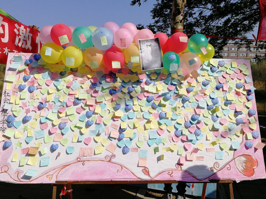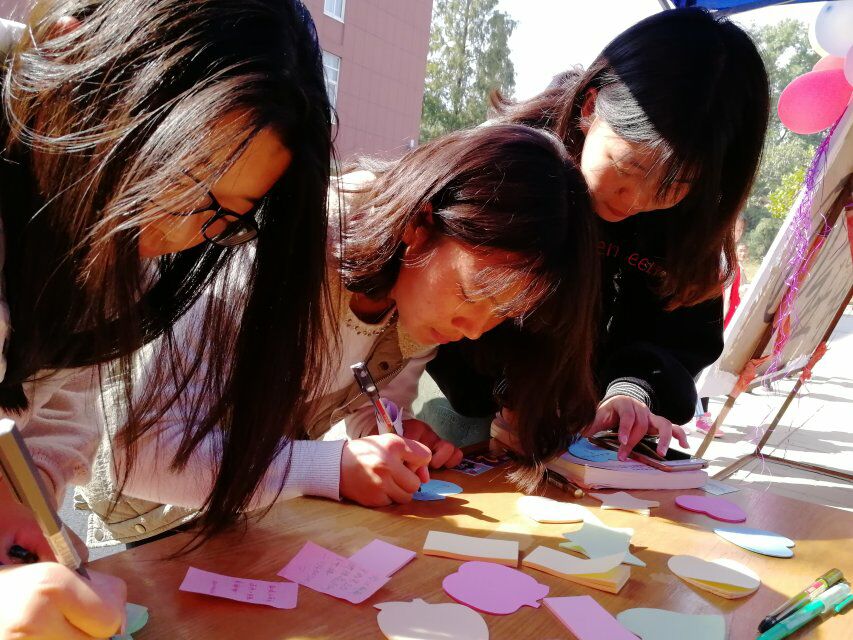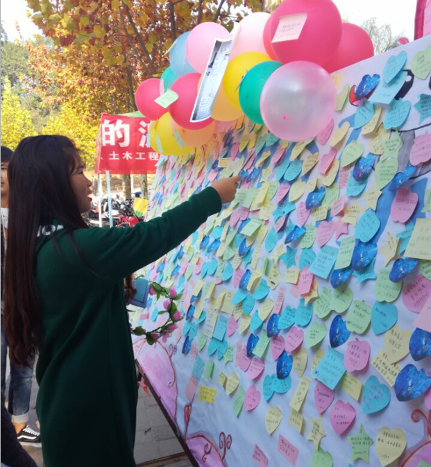 活动形式新颖,一开始就进入了良好的状态,学生参与热情高涨。为进一步加强我校男女生之间的交流,特意在社科楼前设置心愿台,准备各种便利贴,让女生在心愿台上贴上自己的愿望和期许,并由男生取下并帮助她们实现愿望。在本周,女生享有“特权”,可享受男生提供的免费服务。