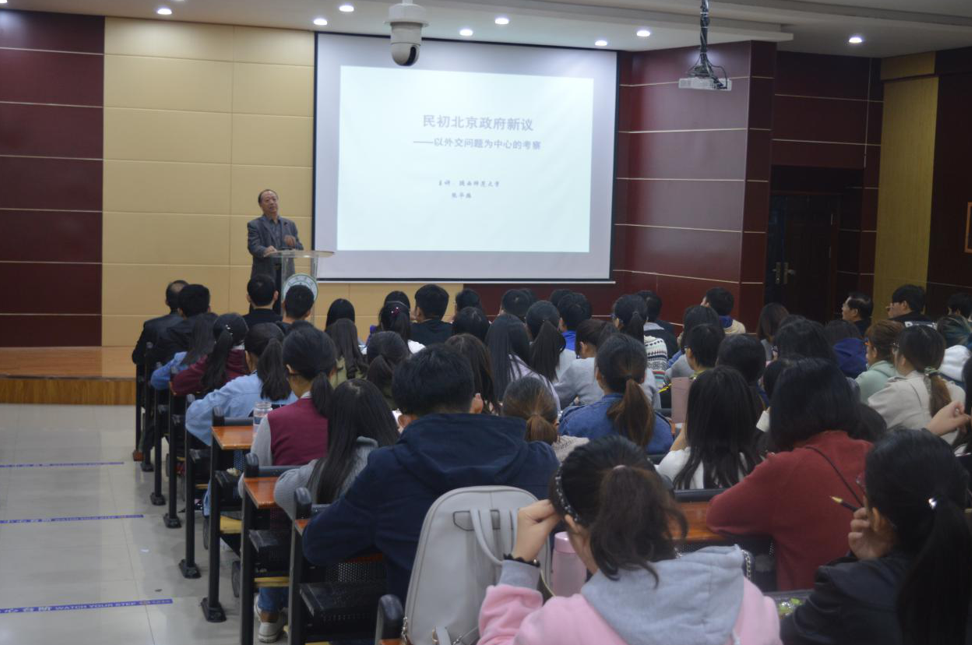 张华腾教授以民初面临的几个重大外交问题为核心,如沙俄策动外蒙古独立、英国图谋分裂西藏、日本提出“二十一条”问题、巴黎和会与中国外交失败的问题,对民初北京政府进行了新的评价。他指出,虽然民初北京政府有种种不足,但在维护国家主权、领土完整等方面还是作了一定的努力,为后期不平等条约的废除奠定了一定的基础。学术报告结束后,张华腾教授与现场师生展开了热烈的交流和讨论。