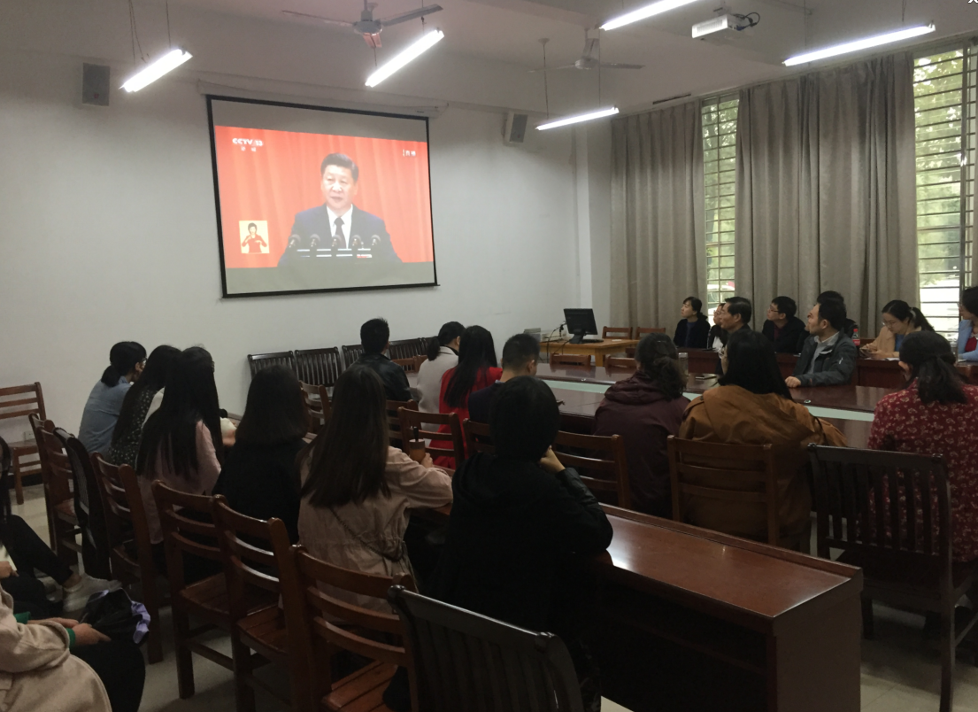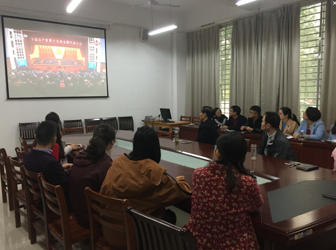 太阳成集团tyc539党总支于10月18日上午组织学院领导班子成员、辅导员、教师和学生党员在会议室集中收看十九大开幕会直播。