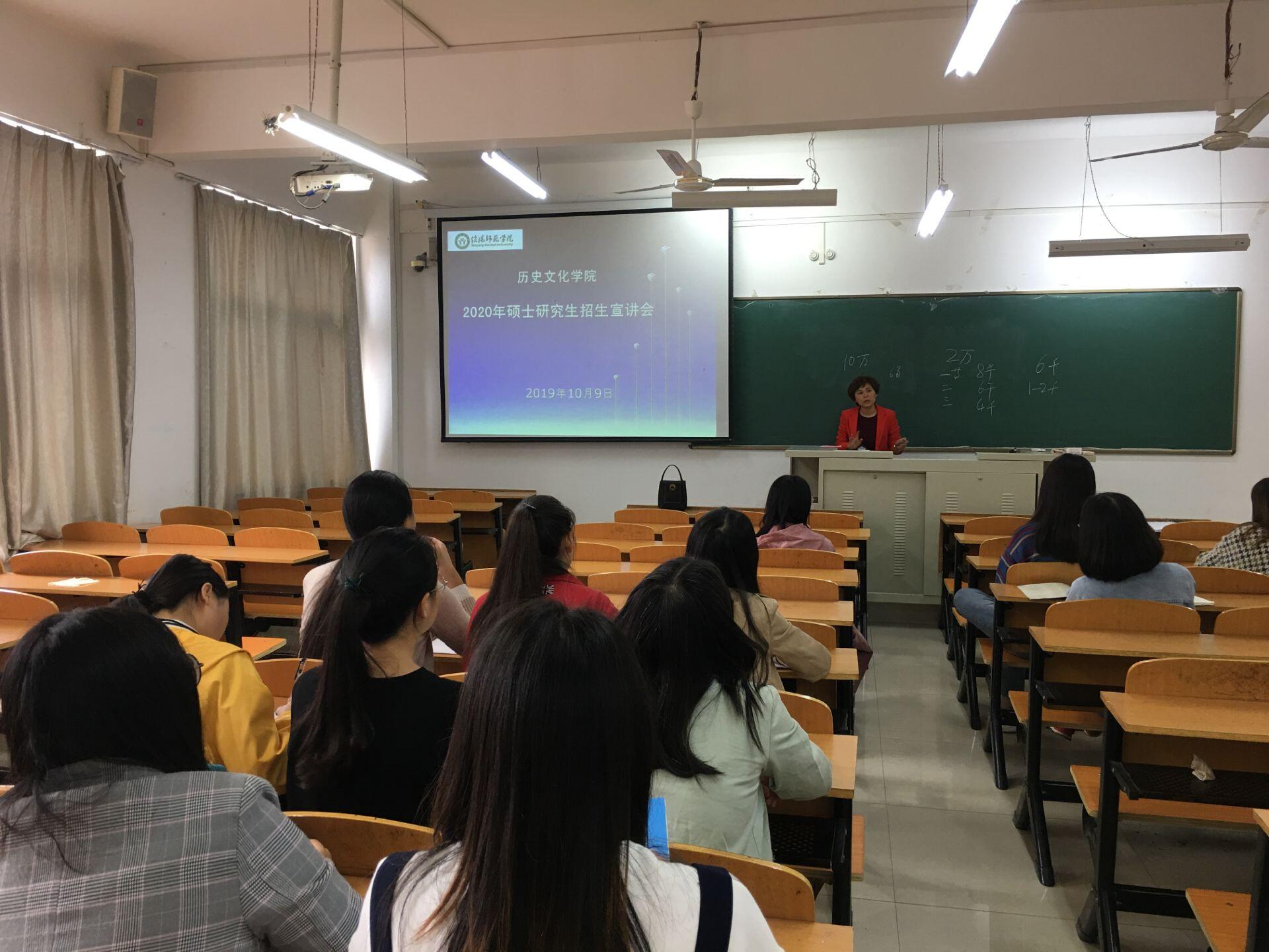 10月9日下午,信阳师范学院历史文化学院负责研究生招生的史老师一行来到我校太阳成集团tyc539,在社科楼315教室举行了2020年硕士研究生招生考试宣讲活动,太阳成集团tyc539辅导员陈功林老师和部分大四、大三学生参加。