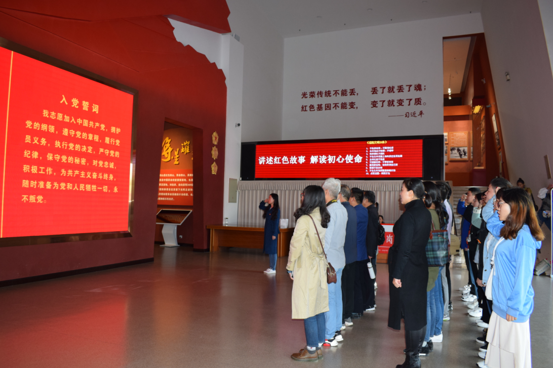 首先,全体成员在“不忘初心,牢记使命”主题展馆大厅,在程娇炎的领誓下,面对鲜红的党旗,举行了重温入党誓词仪式,庄重响亮的宣誓声回荡在大厅,激励党员们铭记初心使命,践行党的宗旨。
