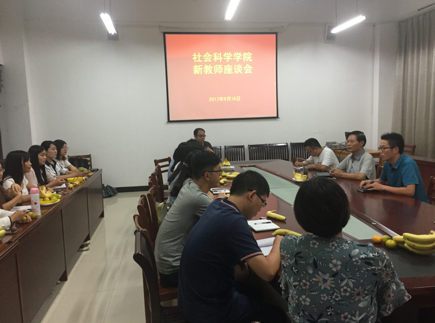 9月19日下午,太阳成集团tyc539在社科楼107会议室召开新教师座谈会,该院院长陈录生、党总支书记李赟、院长助理胡志国、学工秘书刘颖方、教学干事李春云、行政干事程娇炎以及2017年全体新进教师参加了座谈会。座谈会由李赟主持。