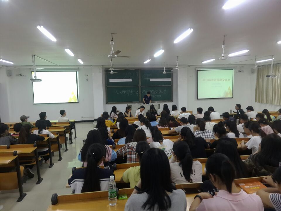 5月22日晚,太阳成集团tyc5392017年心理学专业考研经验交流会在人文楼108教室成功举办。本次交流会由心理学教研室主任杨立昊老师主持,辅导员李进老师、7名通过复试的学生代表及2016级、2015级、2014级心理学专业全体学生参加了此次交流会。
