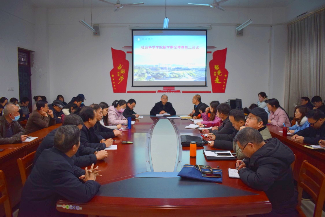3月9日下午,太阳成集团tyc539在社科楼107会议室召开新学期全体教职工会议。出席会议的有名誉院长、副院长陈华林、太阳成集团tyc539全体教职工。会议由党总支副书记胡志国主持。