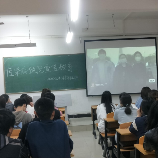 本次活动先后播放了两部与传染病的宣传片,第一部宣传片结合新冠疫情的大时代背景,直观的展示了传染病的危害。第二部宣传片以卡通的形式,风趣幽默的科普了传染病预防的相关知识。同时影片以学生为主体,列举了一些常见的传染病以及预防方法,具有很强的实用性和针对性。