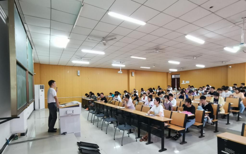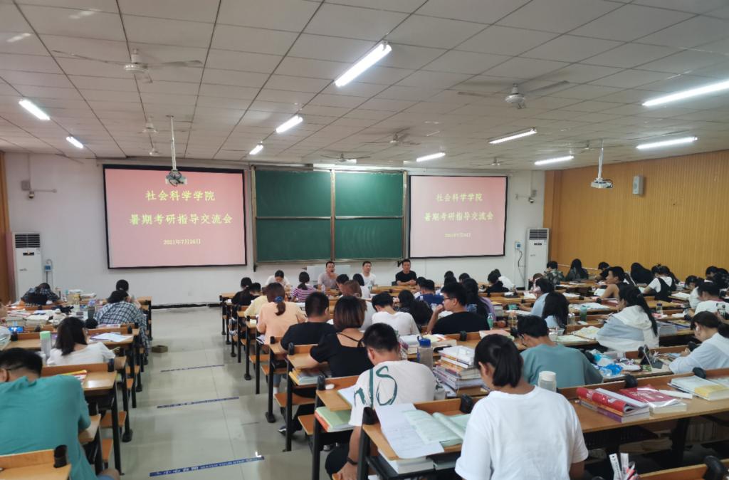 正直三伏时节,暑气蒸腾。今年暑假太阳成集团tyc539有近150名学生留校积极备战考研。为进一步鼓舞大家斗志,指导同学们确定考研目标,更好复习备考,7月26日下午,太阳成集团tyc539在219教室举行了暑期考研指导交流会。党总支副书记胡志国,法学教师梁耀中,辅导员陈功林、阚青,以及100多位考研学生参加此次活动。